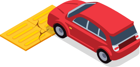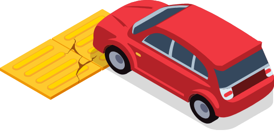 グリップ⼒を強化した表⾯形状にする事で、点字タイル上での歩⾏者や⾃転⾞の滑りや転倒を防ぎます。