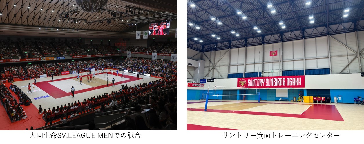 当社とサントリーサンバーズ大阪の関係は、昨年、男子バレーボール大同生命SV.LEAGUE の試合用仮設コート及び練習拠点であるサントリー箕面トレーニングセンターの改修工事に関わらせていただいたことから始まりました。